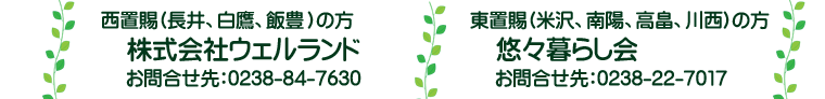 山形県置賜地区の福祉、介護をサポートするために株式会社ウェルランドは、福祉用具レンタル・販売、介護リフォーム事業を行っています。 西置賜地区の方は「株式会社ウェルランド」、東置賜地区の方は「悠々暮らし会」まで、お気軽にお問合せ下さい。
